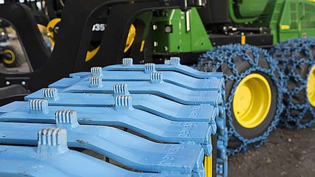 pewag bluetrack flow wide es especialmente cuidadosa con el suelo y los neumáticos, además de ser muy estable gracias a su amplia superficie de apoyo, y es símbolo de la máxima protección del suelo. La banda de oruga forestal es especialmente apta para superficies sensibles ya que su mayor superficie de apoyo evita que la máquina se hunda, incluso con cargas pesadas.