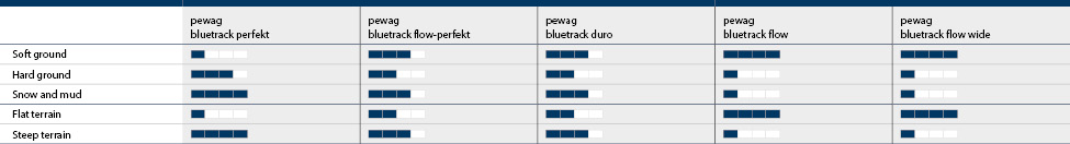 pewag bluetrack flow-perfect es una banda de oruga que combina las mejores propiedades de tracción y protección del suelo todo en uno. La banda de oruga es una combinación de bluetrack flow y bluetrack perfect con lo que se adapta perfectamente a las diferentes condiciones del bosque. La banda de oruga puede utilizarse de forma universal en todos los suelos.