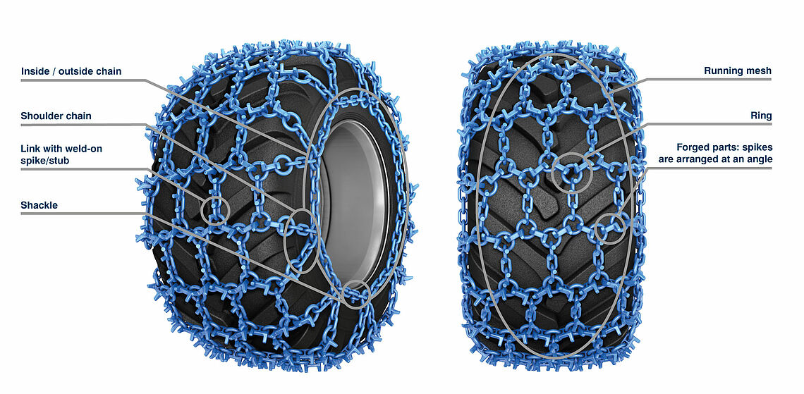 La fiabilidad y la resistencia son factores cruciales para un trabajo seguro y eficiente en el campo. Las cadenas forestales pewag garantizan un agarre óptimo en todos los campos de utilización, tienen una vida útil más larga que las cadenas de tracción convencionales, ofrecen un alto nivel de protección de los neumáticos y tienen un excelente efecto de autolimpieza.