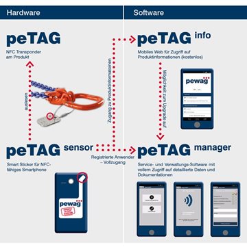 Cu nou dezvoltata peTAG solution vă stau la dispoziție date și informații importante despre produse ca de ex. capacitatea portantă sau instrucțiuni de utilizare detaliate și rapoarte de audit vă stau la dispoziție direct pe telefonul mobil. Premisa este doar un telefon inteligent standard cu opțiune NFC, dotat cu un senzor TAG.